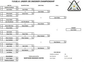 Thanks to the Northern Snooker Centre for use of their excellent facilities and to Michael Davenport for TD and refereeing duties.
