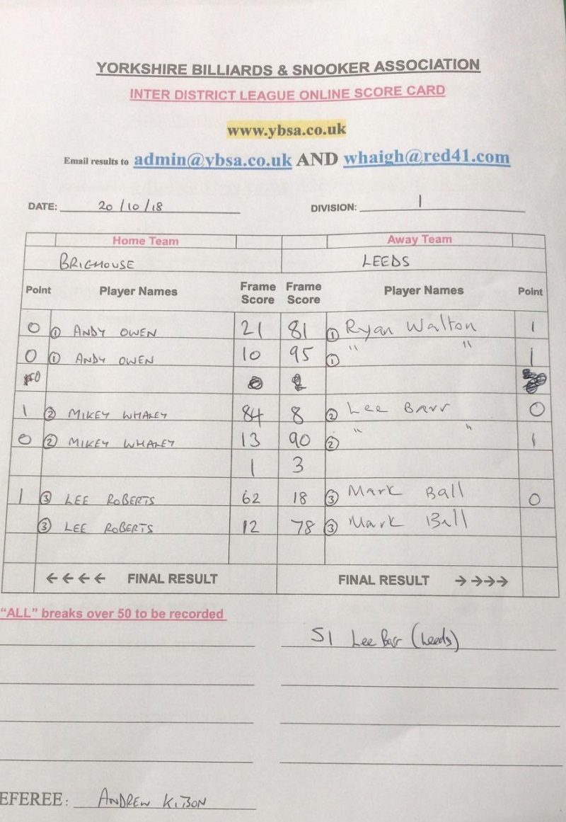 | 20th October 2018 | 7:30 pm | Division One | 2018/19 | Fixture 2 |