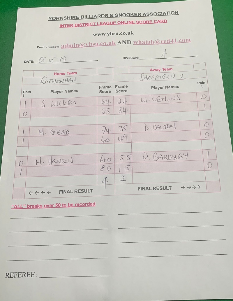 Sheffield 2 vs Rotherham |