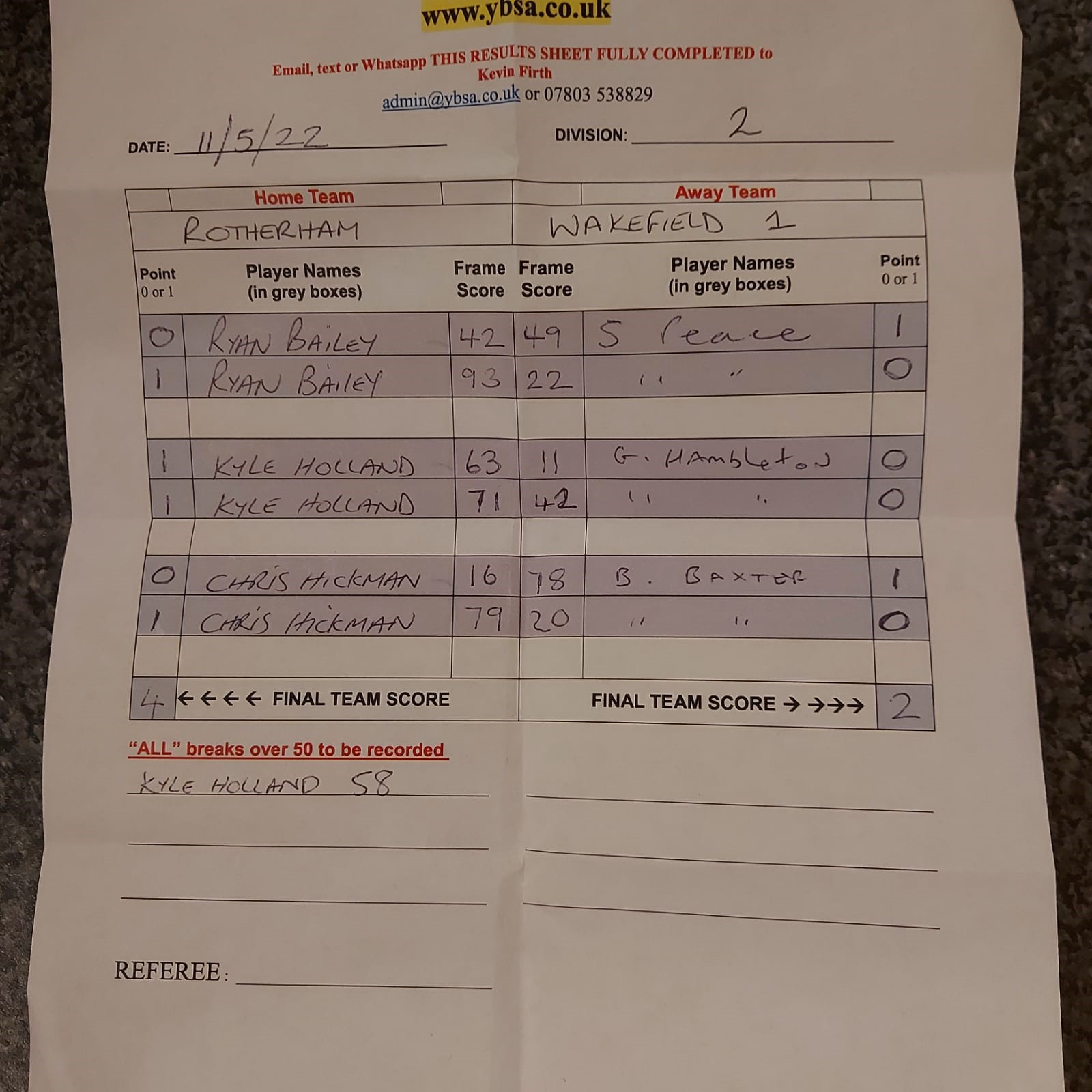 | 7th May 2022 | 7:30 pm | Division Two | 2021/22 | Fixture 8 |