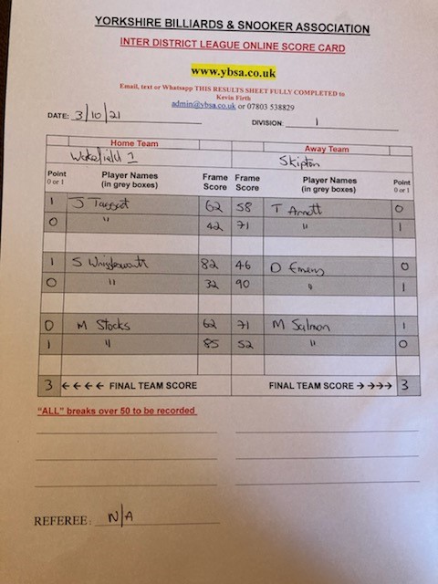 | 25th April 2020 | 7:30 pm | Division One | 2019/20 | Fixture 10 |