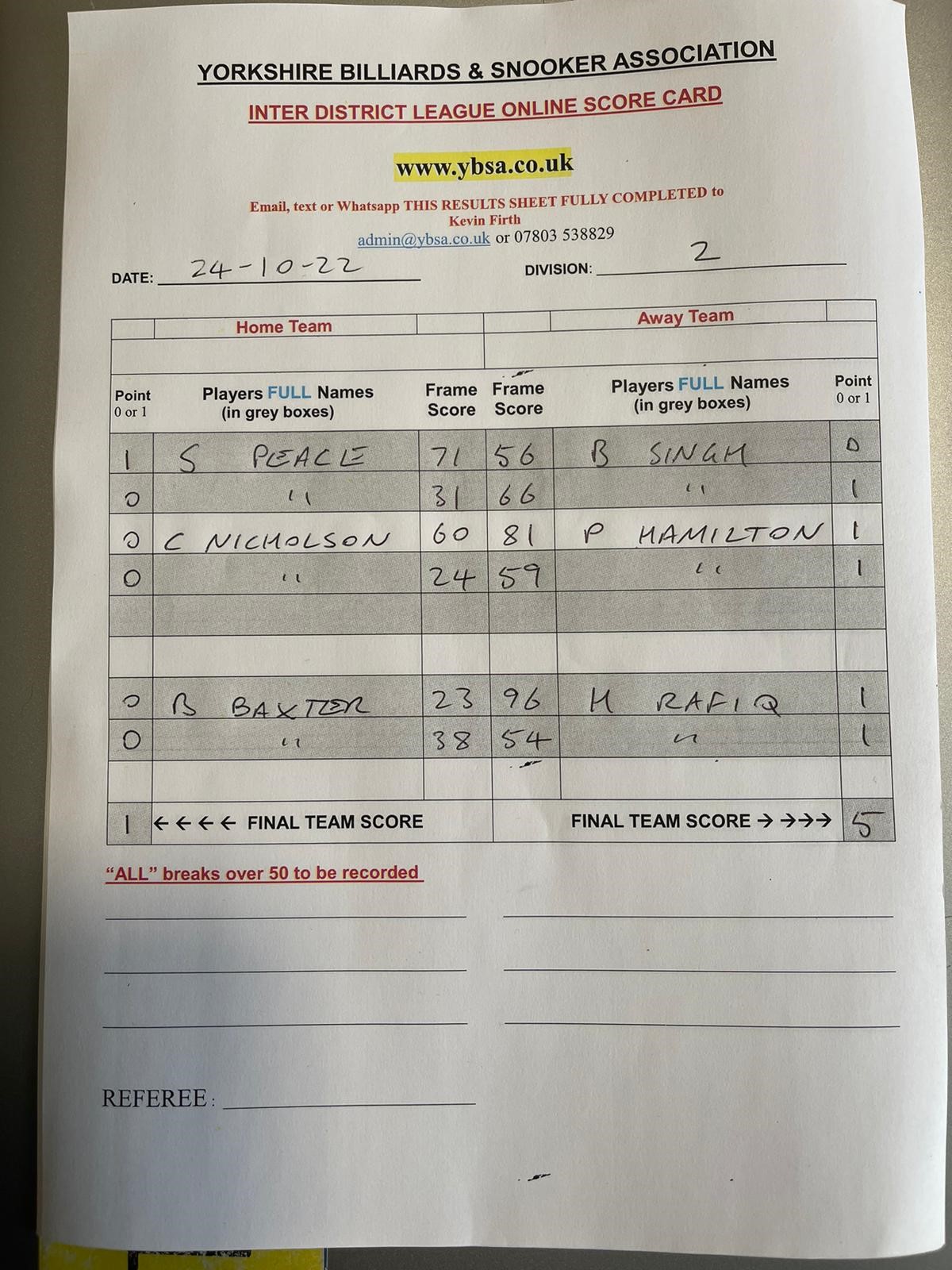 | 22nd October 2022 | 7:30 pm | Division Two 2022/23 | 2022/23 | Fixture 1 |
